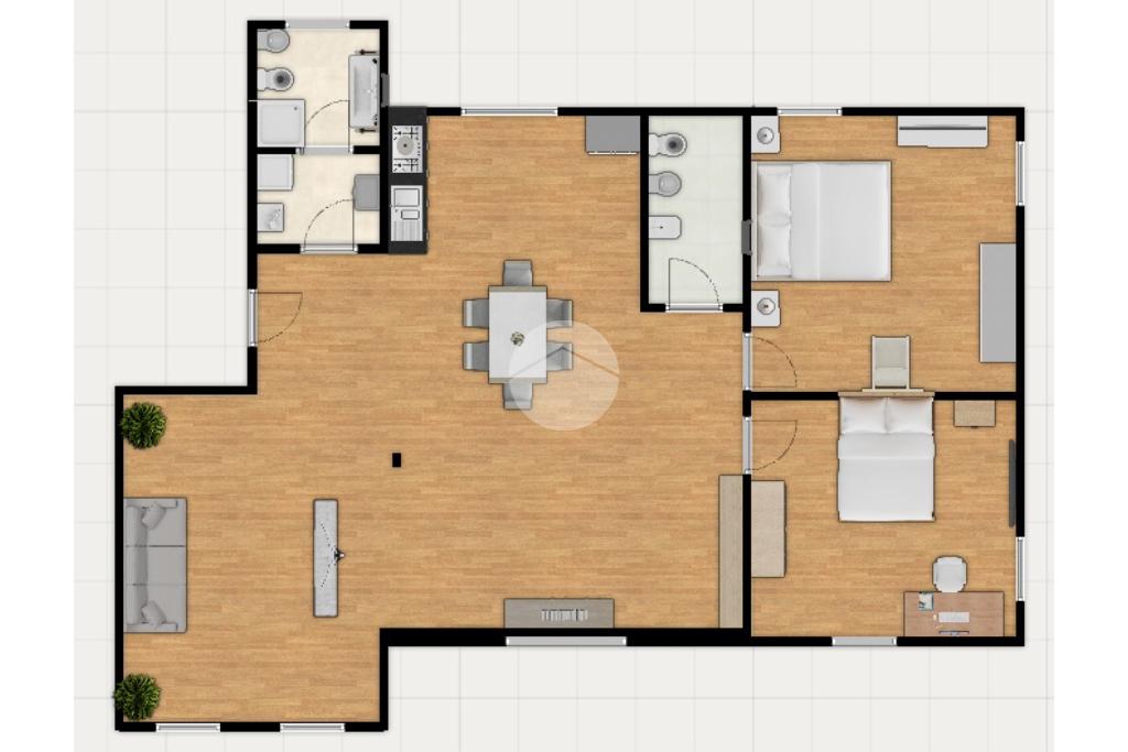 L'immobile, in fase di ristrutturazione, sarà composto da ingresso, salone doppio con cucina a vista, due camere, doppi servizi e zona lavanderia.